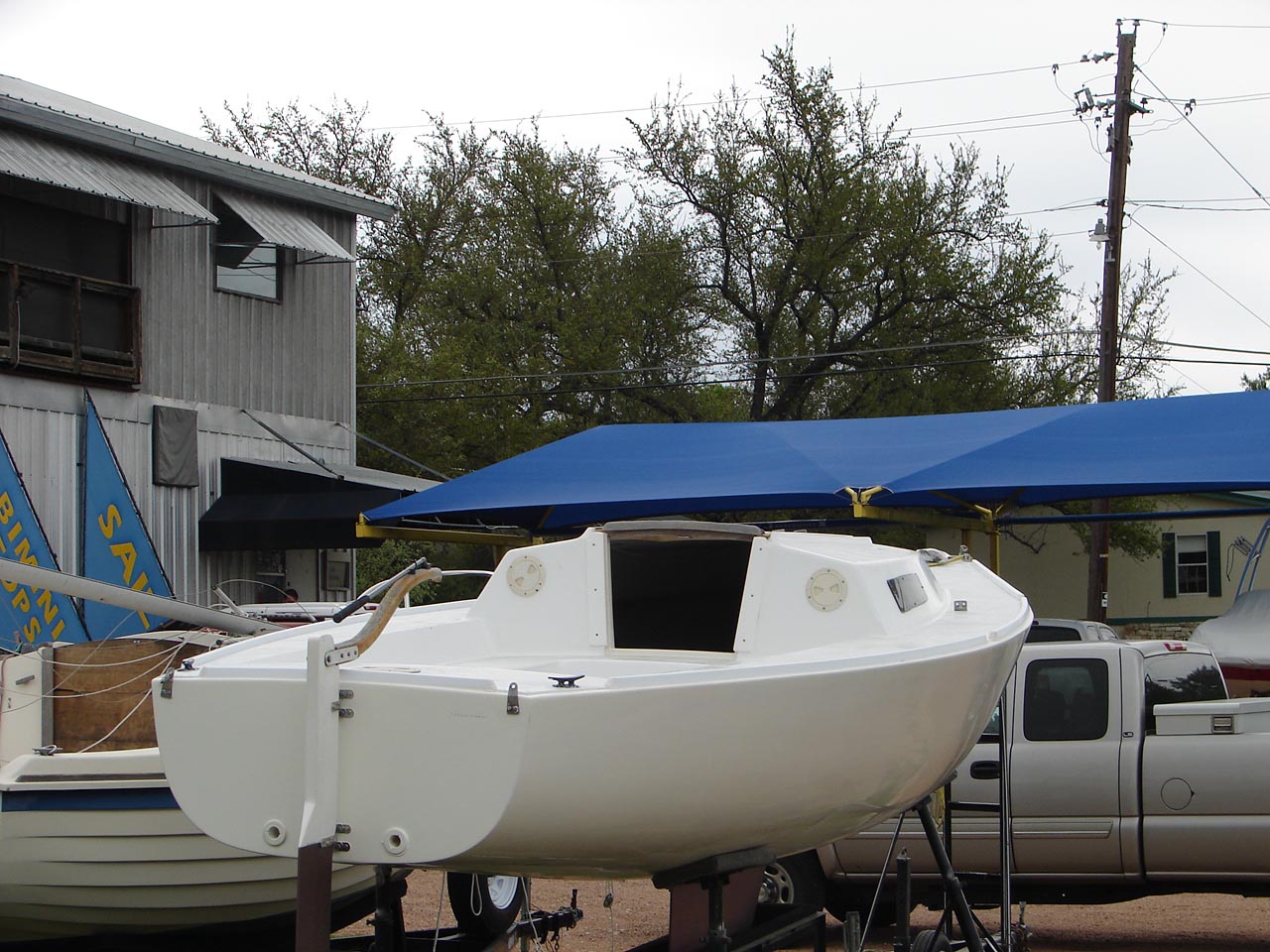 Sales pitch from the designer / prototype builder This prototype and mold was built while absolutely convinced I could simply show it to other fans of the J-22and receive instant support for its use. I sail J-22s and have sailed J-22s since the first "two digit" sail numbered J-22s arrived in Austin. I have watched the development of the boat and the racing class and I have maintained literally hundred's of racing J-22s. When J-24s and J-22s first appeared with plastic toe rails, many sailors instantly decided to retrofit their older boats. The change to plastic was well received. sailors do not generally like to maintain teak rails. The original teak toe rails on most Texas J-22s have weathered to the point where the teak plugs are gone and the screws are sticking up above the remaining wood. The first 1200 J-22s came with a teak coaming board on each side of the cockpit. The very newest J-22s have a plastic molding where the original J-22s had teak coaming boards. The teak coaming boards on most of the Texas boats are severely weathered and worn away. Some coamings are fractured and many have uncomfortable or even dangerous splinters waiting to find homes in lines and crewmember's skin and clothing. Replacement of the teak is a difficult process involving a lot of chiseling, a very expensive thick piece of teak, woodworking tools and a skilled artisan.. Owners whose goals include "getting rid of all the #%&@##! teak would love to have a better option than "replacing everything but the coaming boards. No one, according to my limited knowledge, has offered a practical plastic one design retrofit for the J-22 teak coaming rails and the class has not approved any modification what so ever to the teak coamings. (Rumor has it some racing J-22s, without first seeking class approval, have already been modified to match the new decks. I am trying to get ahead of the problem by creating a standard solution.) The owners of the old boats would like to believe their old boats can be competitive with the newer boats. One definition of even competition might be that the owner of an older boat be able to make the older boat "just as pretty" and "just as comfortable" as the newer boats. Specifically? The owner of J-22 number 307 said, "I want plastic so I don't have to maintain old teak ever again. I want something nice to sit on like Mark has on his new boat." (Mark has a deck with a molded coaming) As a long time racer / cruiser of the J-22, I built the exact coaming I believe is appropriate. I built a prototype and I built a mold because I believe I have created the exact thing which solves the problem of "Retrofitting a J-22 coaming with a fiberglass coaming while maintaining the integrity of the One Design Racing J-22." My proposed coaming rail kit will have zero impact on the order of finish in any race at any time. My proposed coaming may cause some extra boats to participate as the sailors will be more comfortable and more likely to enjoy themselves.