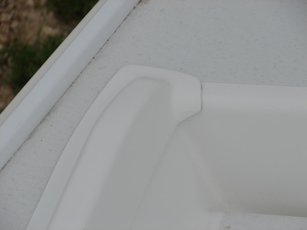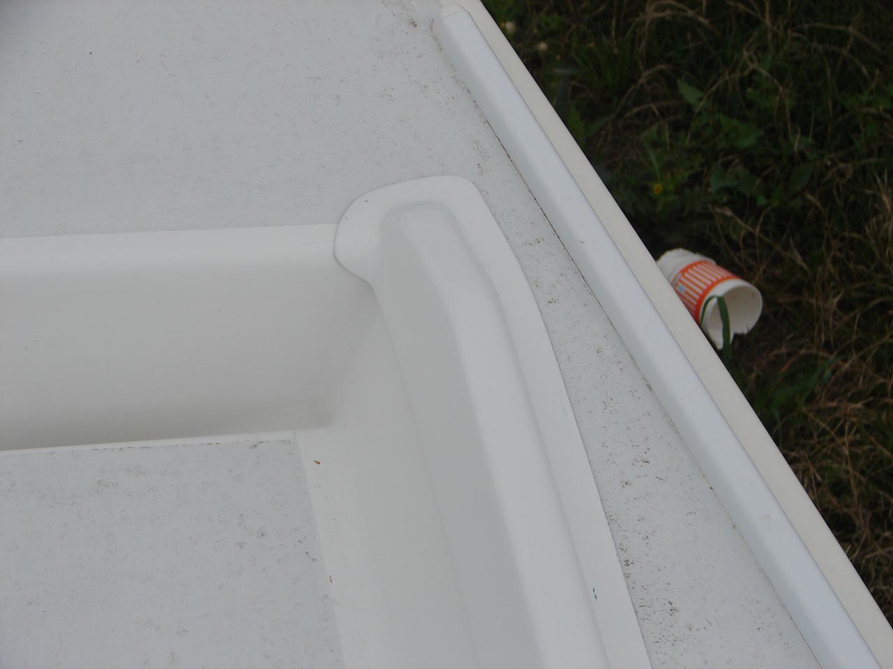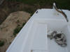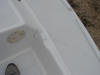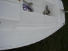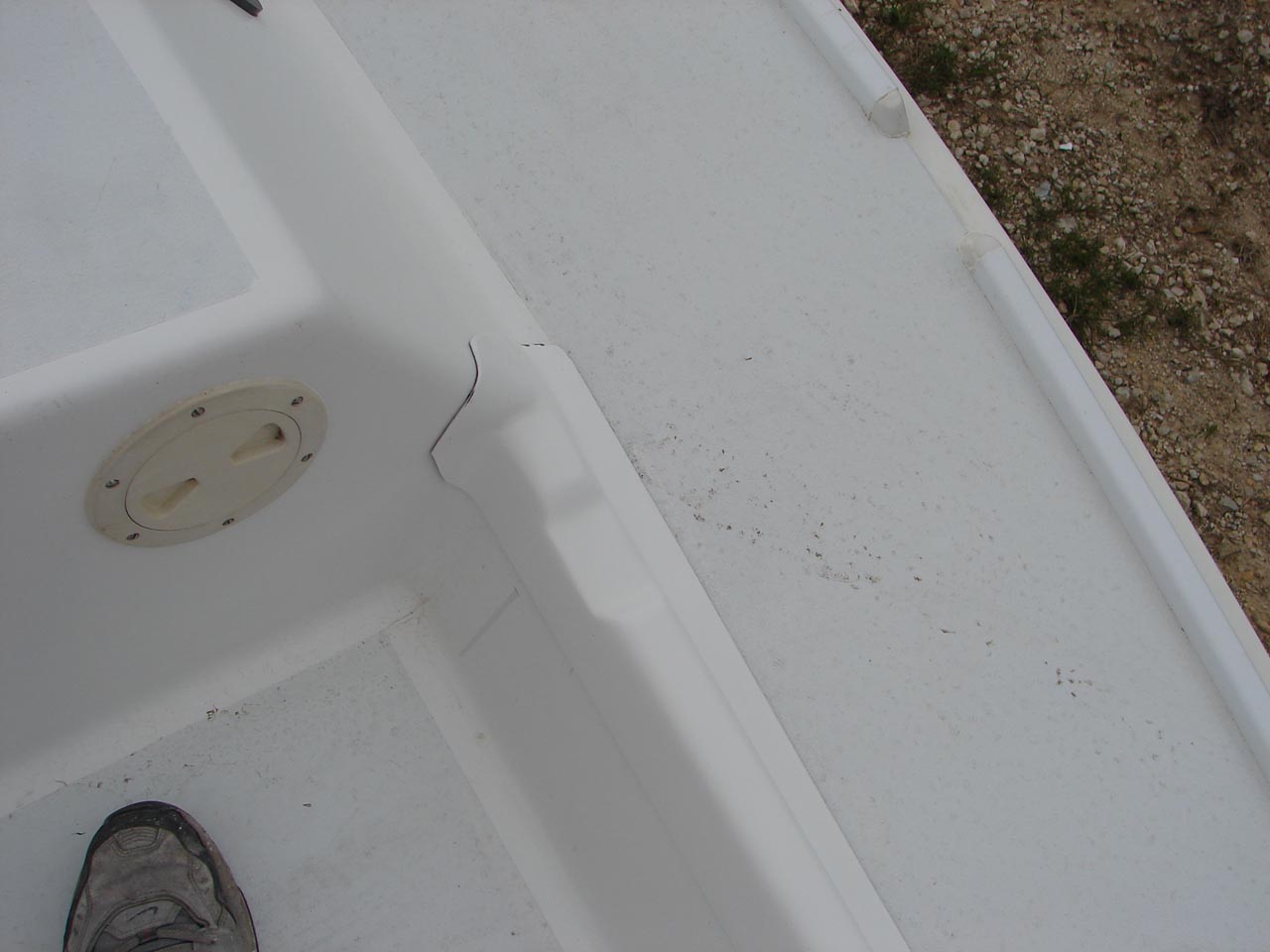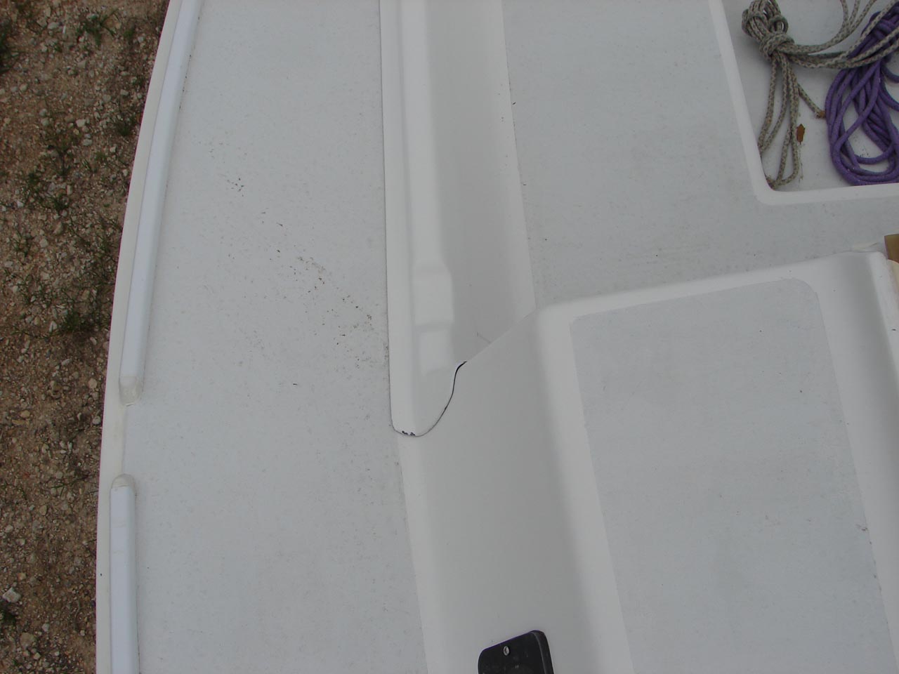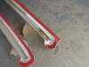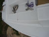 Installation The plan is based upon simplicity and the minimum tools a J-22 sailor may own or reasonably purchase. I believe it would be best to remove the screws and chisel away the old rail before installing the new fiberglass rails. The new rails are constructed such that a person could simply grind away about 1/2 inch of the old teak rail and install the new fiberglass rail over the old shortened teak. We have already tested our concept by using a Surform brand tool on another J-22. In fewer the fifteen minutes of work, we had the old teak sufficiently ground away to drop the new fiberglass over the old teak. The new rails should be adequately mounted using 3M 5200 sealant and six or seven self tapping #10 truss headed stainless screws.