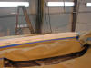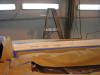 Fred's Proposal I am not an authorized J-22 sailboat builder. For the last 30 odd years I have made a substantial part of my living by maintaining various "J" racing boats. I have no real reason to change that relationship described as "You build them and I fix them." I also understand that other suppliers have built many retrofit J-22 racing items and few if any have bothered to do as I am doing and seek approval before producing and selling parts for racers. I have dabbled in the creation of J boat retrofit parts and even sold many racing motor mounts for installation at the factory on J-24s. Link to photos My initial target guess price for this kit would be $600. I would happily build and sell the parts and maintain one design quality control as described below and for the short term, I will even try my guess price as the officially set price. No other part builder original or aftermarket is building to an approved set price . ( $650 with preinstalled Harken 150 cam cleats.) I would initially build and ship One design Standard parts to any builder for a set $400 plus packing and shipping price. I will build a set of tooling for any Designer and Builder Authorized manufacturer to use. That tooling would be just as the molds in the photos below. Mine have orange tooling gelcoat, at least 6 oz of mat and Iso resin, a layer of 2 mil Coremat, one layer of 1.5 oz mat, another layer of Coremat and at least 6 oz of mat. I tried to keep the Coremat away from the edges of the molds. I believe I could build a set of molds for $1000. That number may cover only the labor and not materials and shipping or perhaps I could accomplish the entire task for under $1000. Particulars could be worked out if and when anybody seriously asks for a set of molds but I am willing to guarantee delivery in the US for under $1500.